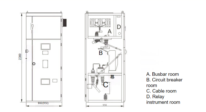المستوى هو IP2x ، وأبعاده القياسية بعرض 900 مم أو 950 مم ، وعمق 950 مم ، وارتفاع 2300 مم.